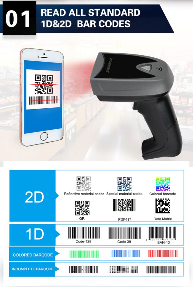 קורא ברקודים מסוג: 1D ו-2D